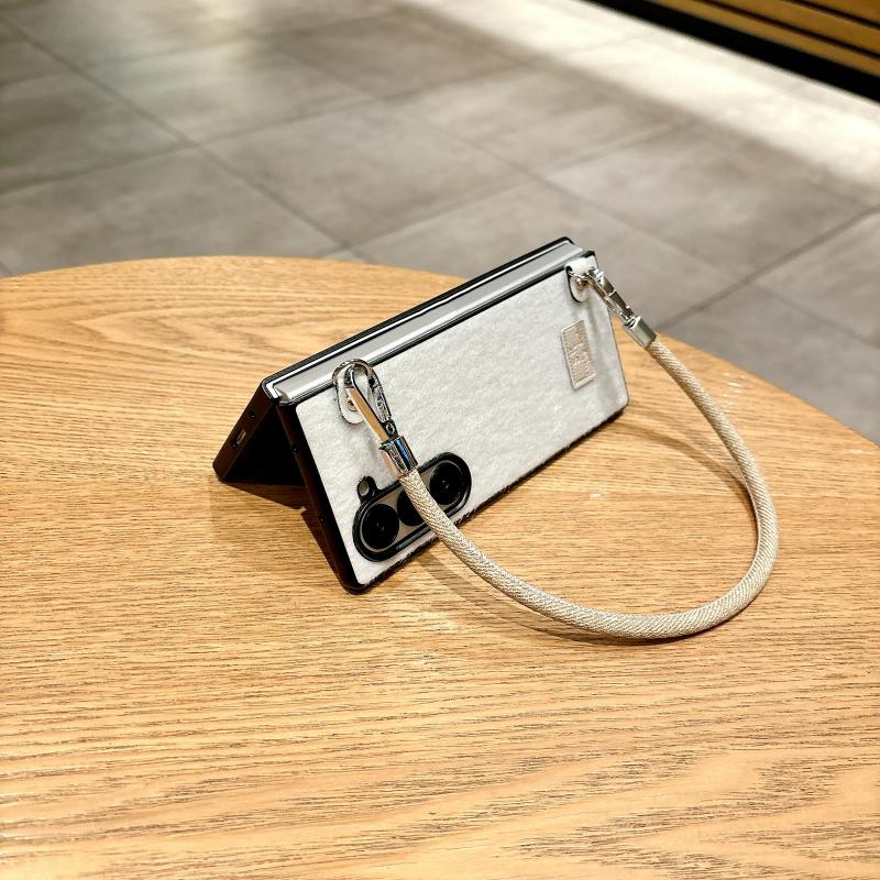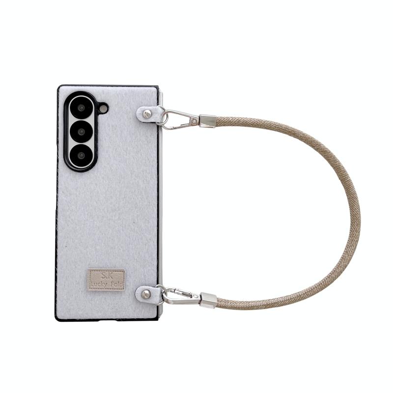 For Samsung Galaxy Z Fold6 5G Comfortable Short Plush Full Coverage Phone Case with Wrist Strap(White)