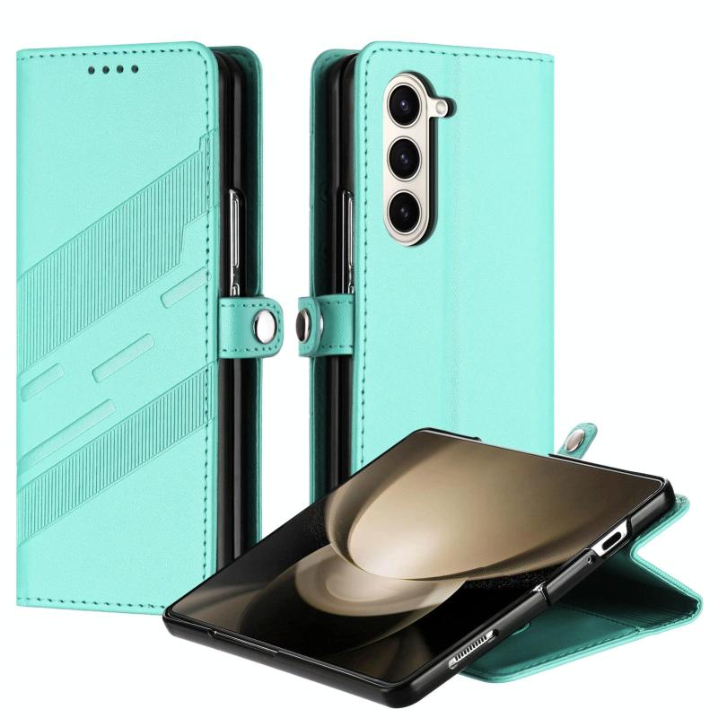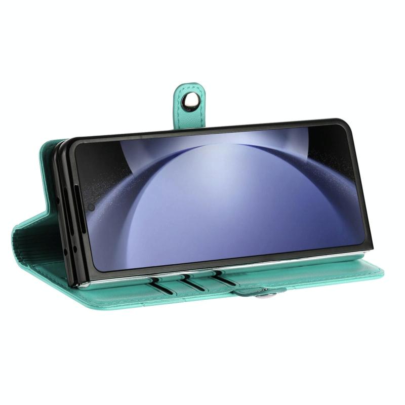 For Samsung Galaxy Z Fold6 5G Embossed Multi-functional Wallet Retro Leather Phone Case(Mint Green)