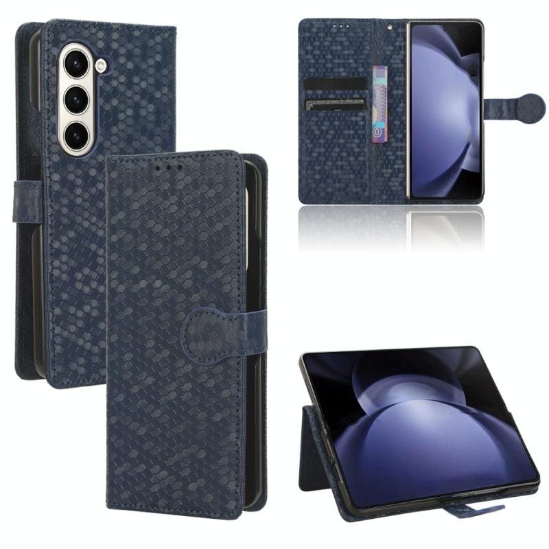 For Samsung Galaxy Z Fold6 5G Honeycomb Dot Texture Leather Phone Case(Blue)