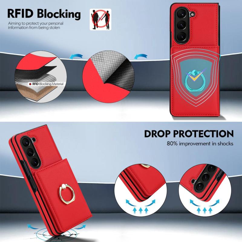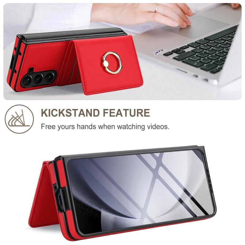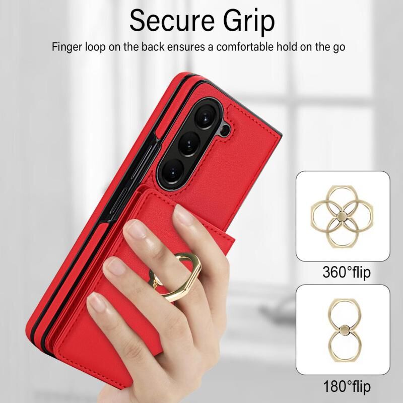 For Samsung Galaxy Z Fold6 5G Integrated Flip Cover Card Slot Holder Leather Phone Case with Ring(Red)