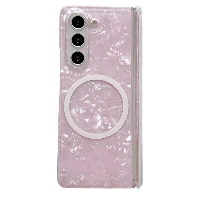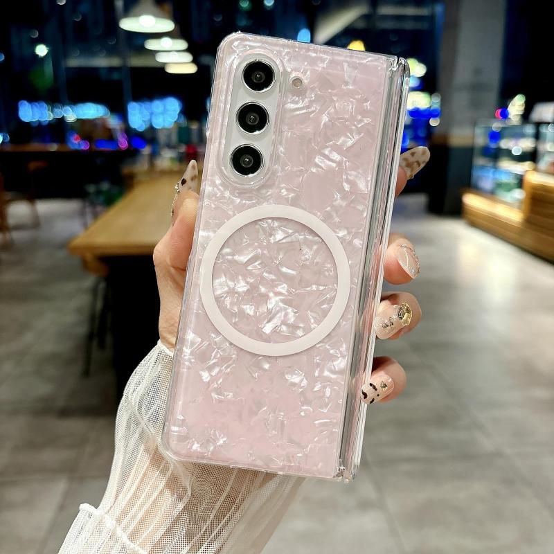 For Samsung Galaxy Z Fold6 5G Magnetic Axis Pearlescent Shell Texture MagSafe Phone Case(Pink)
