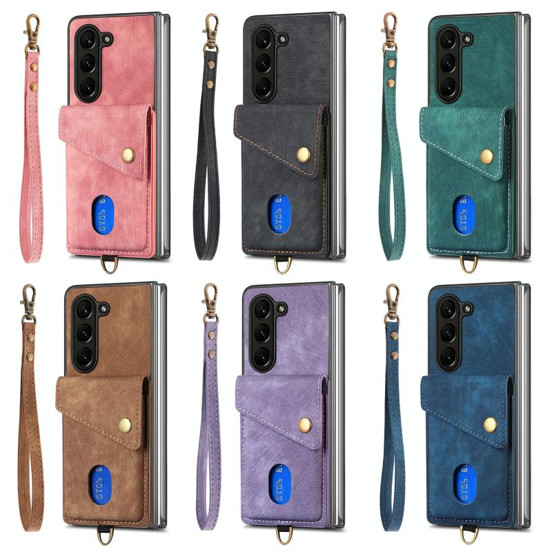 For Samsung Galaxy Z Fold6 5G Retro Card Wallet Fold Leather Phone Case with Strap(Green)