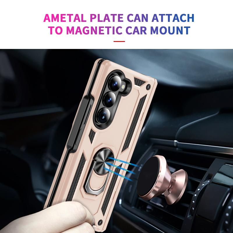 For Samsung Galaxy Z Fold6 5G Shockproof TPU + PC Phone Case with Protective Strap(Apricot)