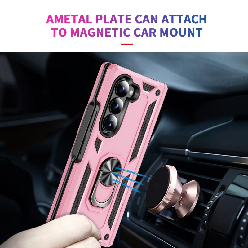 For Samsung Galaxy Z Fold6 5G Shockproof TPU + PC Phone Case with Protective Strap(Pink)