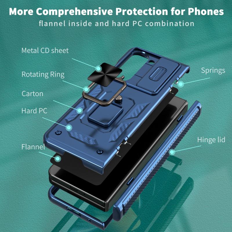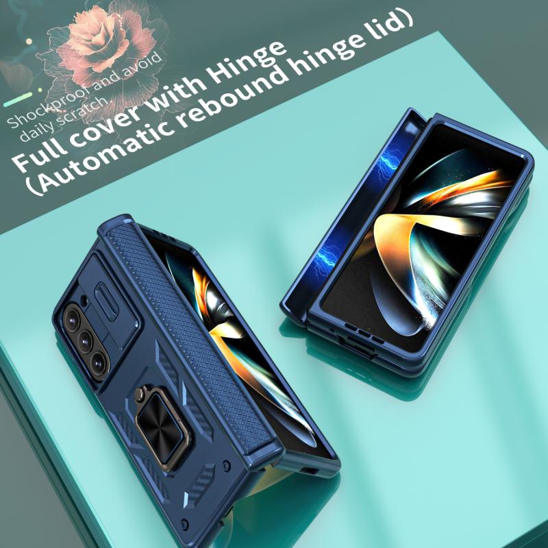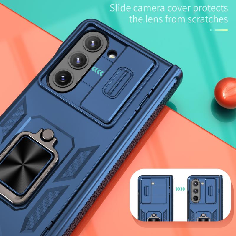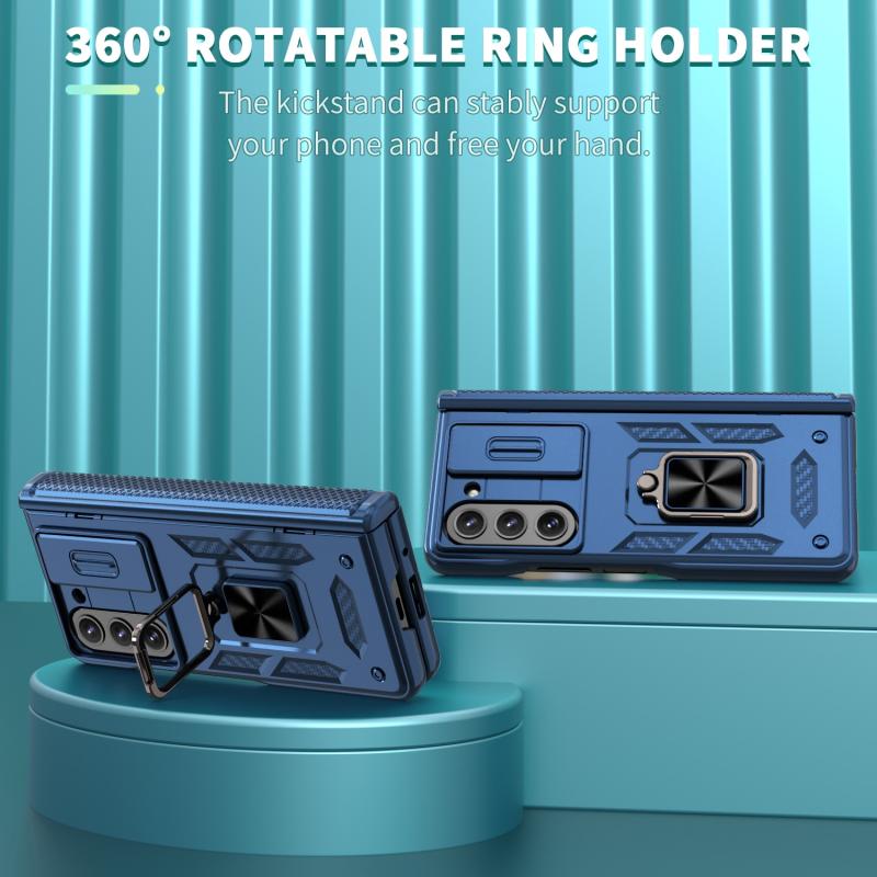 For Samsung Galaxy Z Fold6 5G Sliding Window Hinge Phone Case with Ring Stand(Blue)