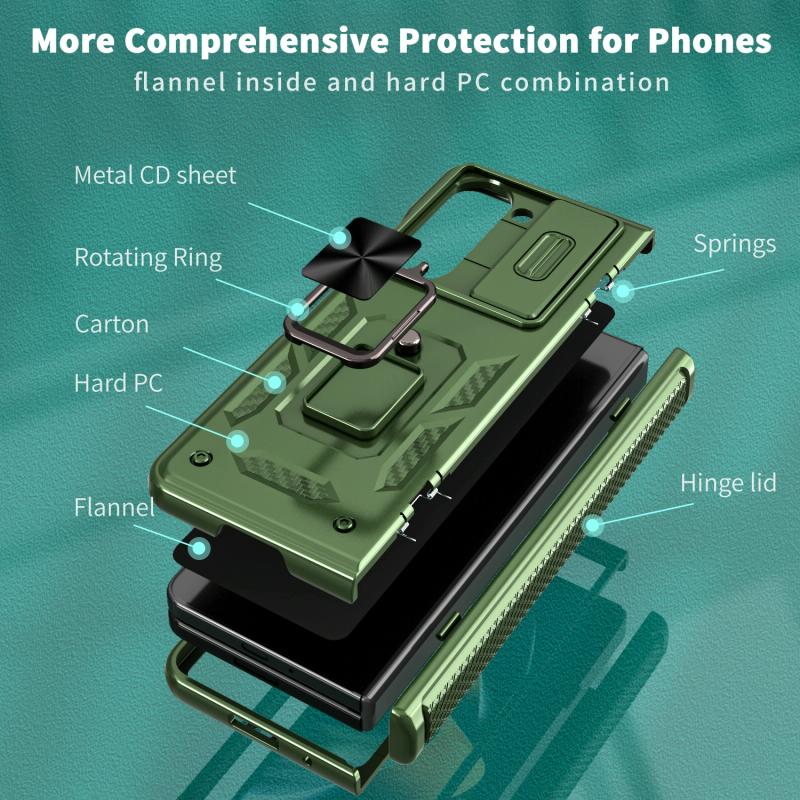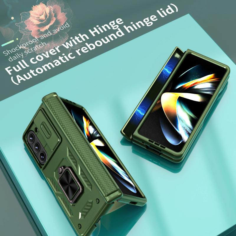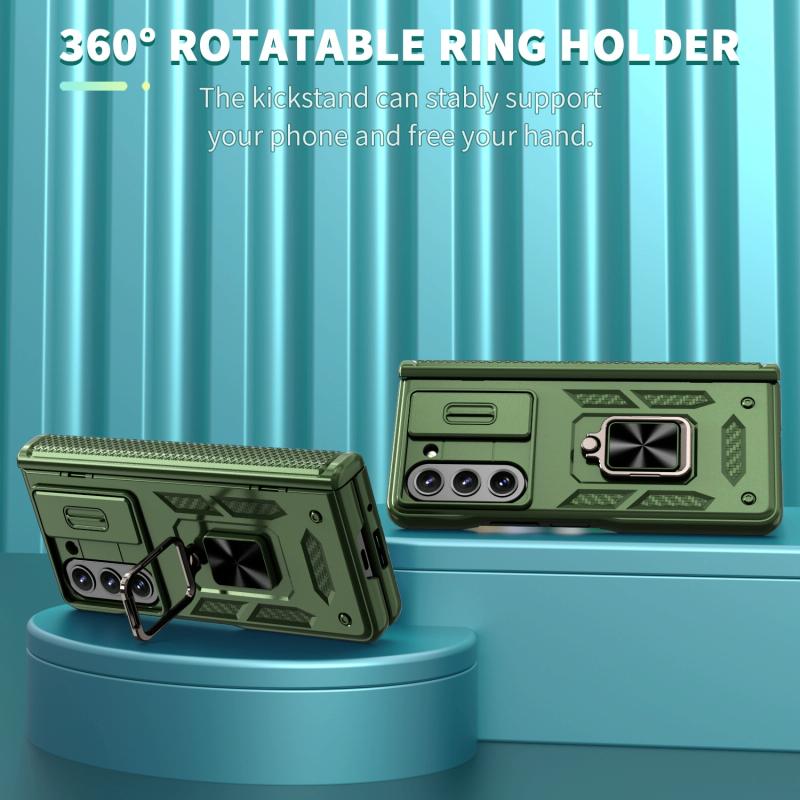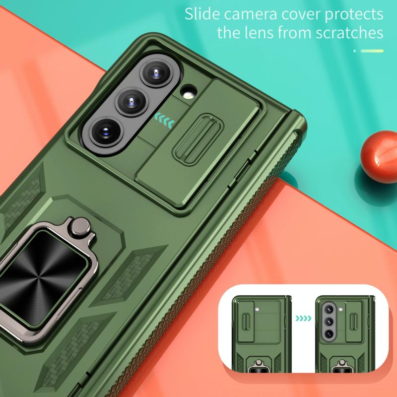 For Samsung Galaxy Z Fold6 5G Sliding Window Hinge Phone Case with Ring Stand(Green)