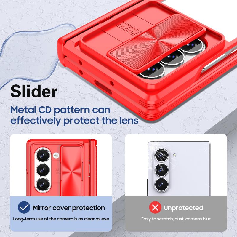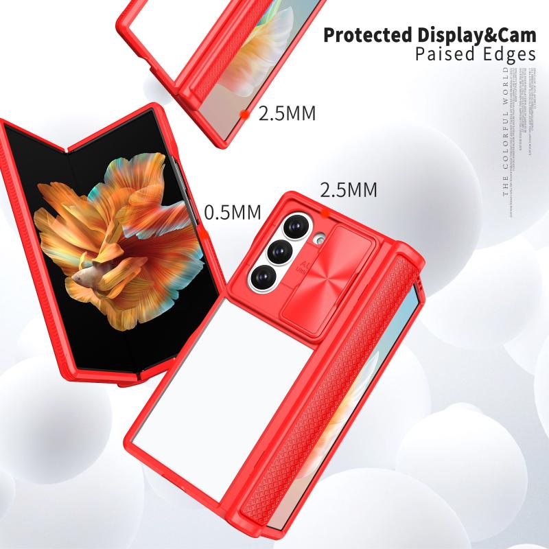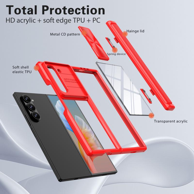 For Samsung Galaxy Z Fold6 5G Transparent Tempered Glass Shockproof Folding Phone Case with Hinge(Red)