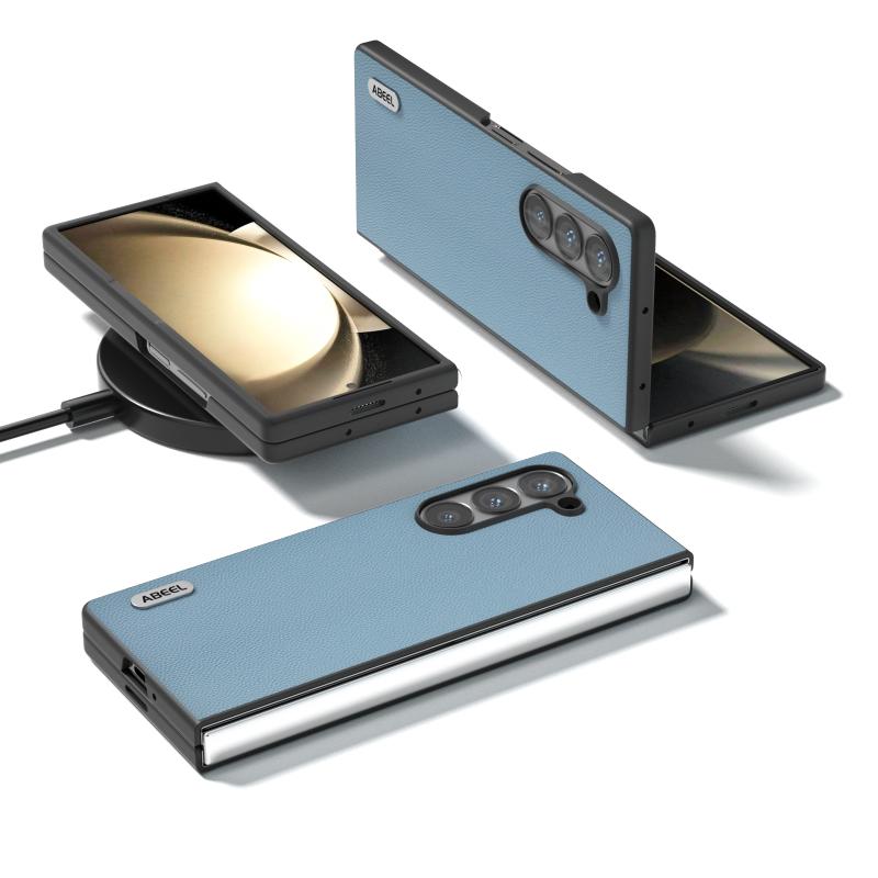 For Samsung Galaxy Z Fold6 ABEEL Black Frame Genuine Leather Elegant Phone Case(Sky Blue)