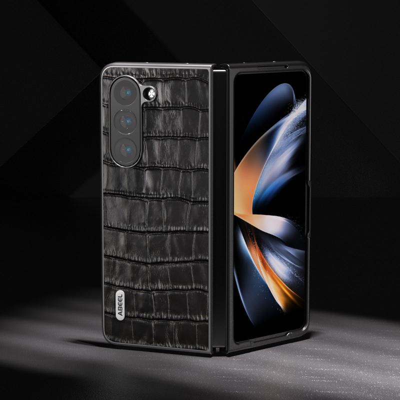 For Samsung Galaxy Z Fold6 ABEEL Crocodile Texture Genuine Leather Phone Case(Black)