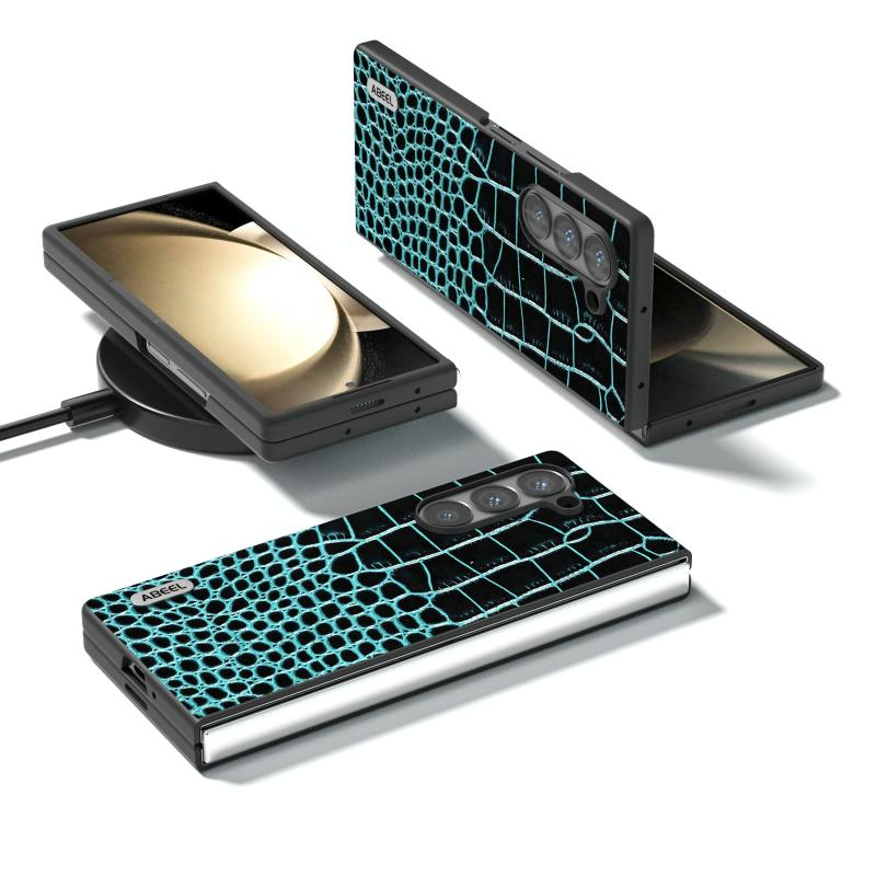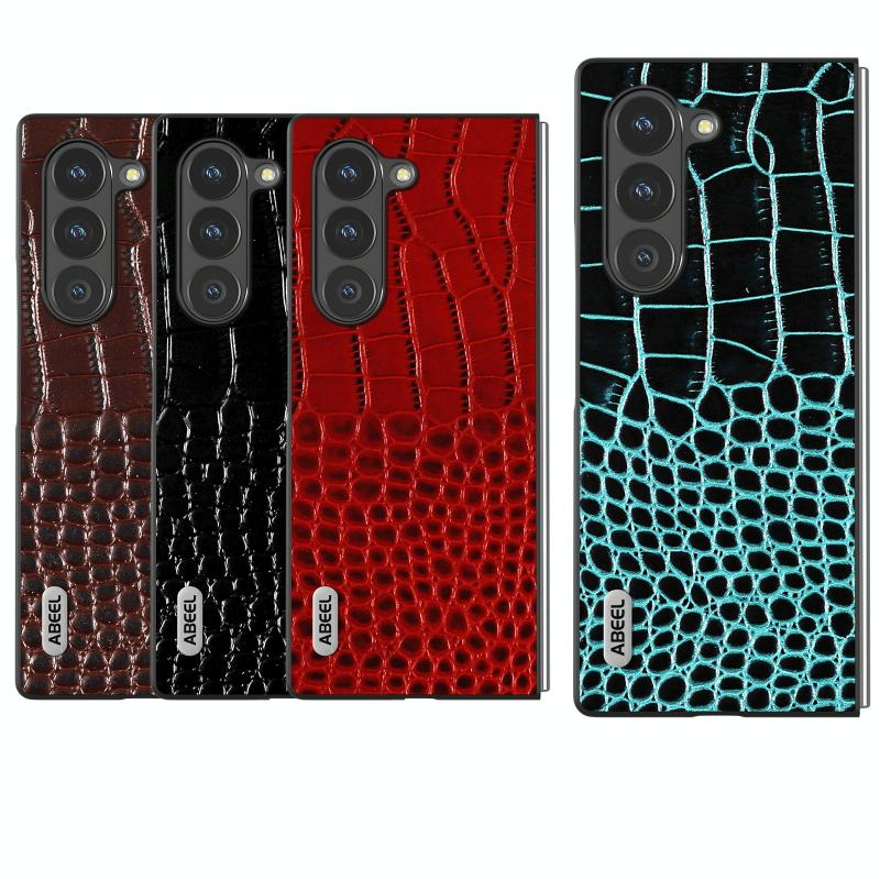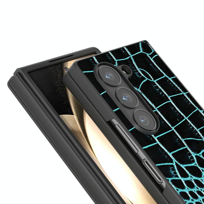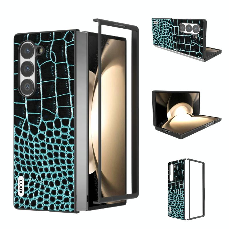 For Samsung Galaxy Z Fold6 ABEEL Genuine Leather Crocodile Pattern Black Edge Phone Case(Blue)