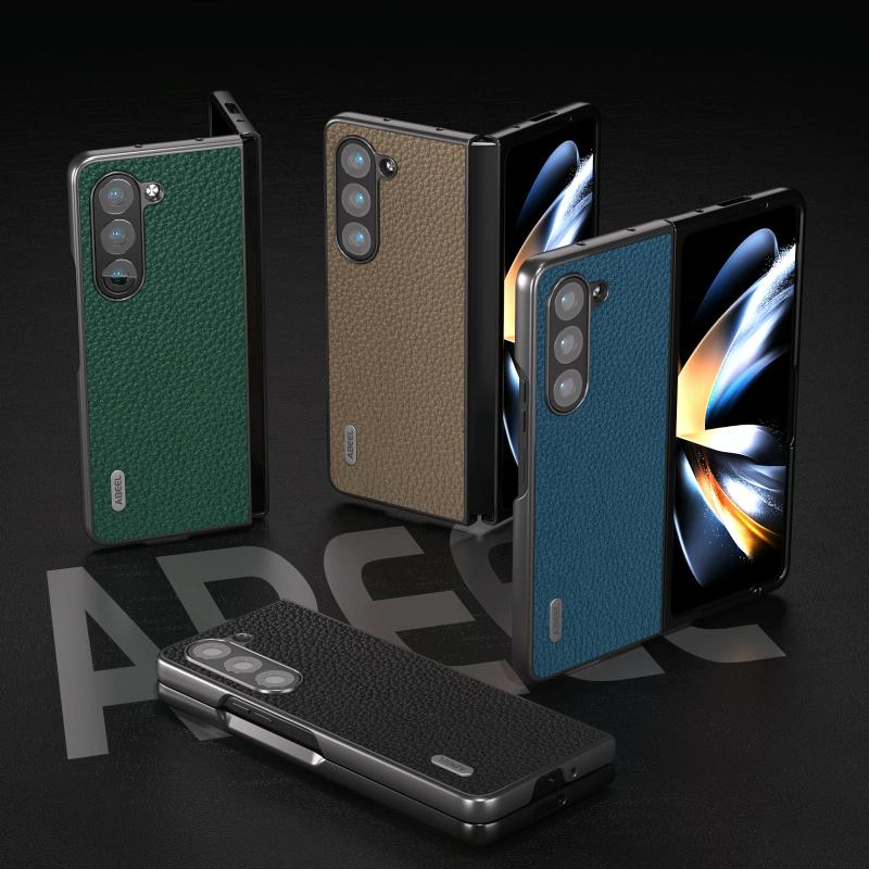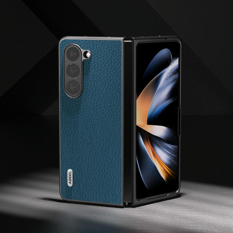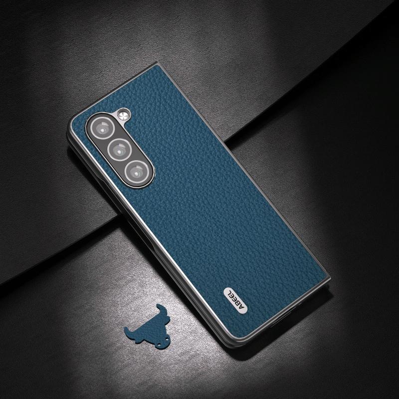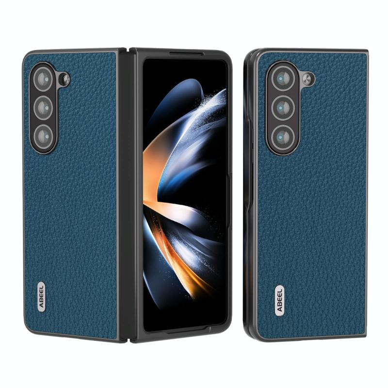 For Samsung Galaxy Z Fold6 ABEEL Genuine Leather Litchi Texture Phone Case(Blue)