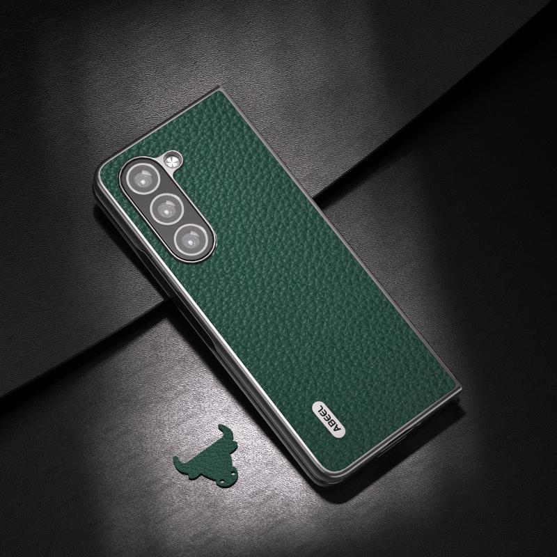 For Samsung Galaxy Z Fold6 ABEEL Genuine Leather Litchi Texture Phone Case(Green)