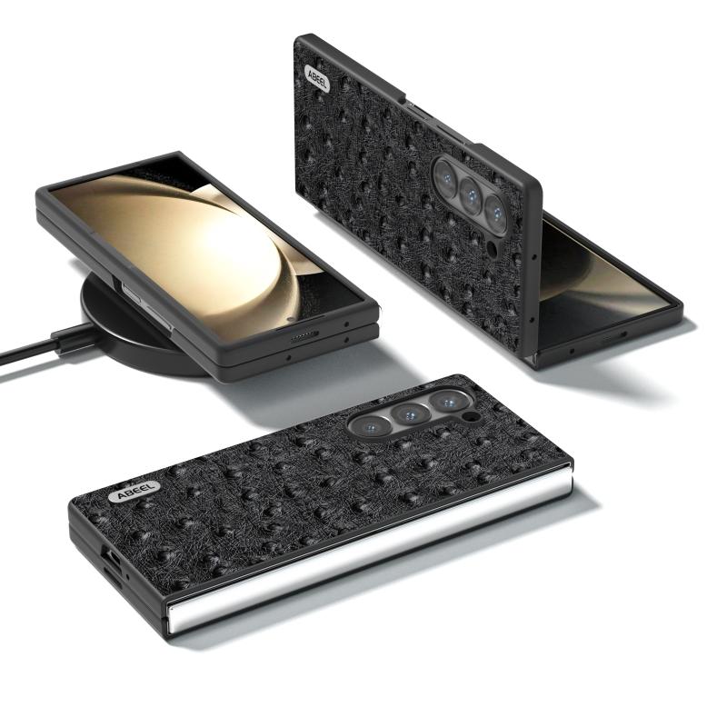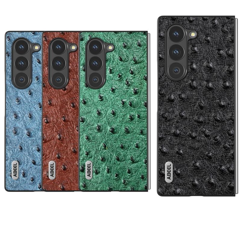 For Samsung Galaxy Z Fold6 ABEEL Genuine Leather Ostrich Texture Phone Case(Black)