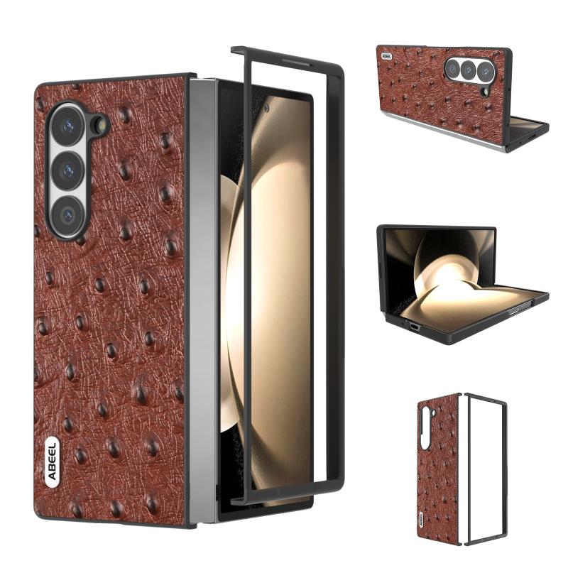 For Samsung Galaxy Z Fold6 ABEEL Genuine Leather Ostrich Texture Phone Case(Coffee)