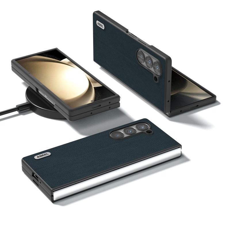 For Samsung Galaxy Z Fold6 ABEEL Genuine Leather Wave Black Edge Phone Case(Green)
