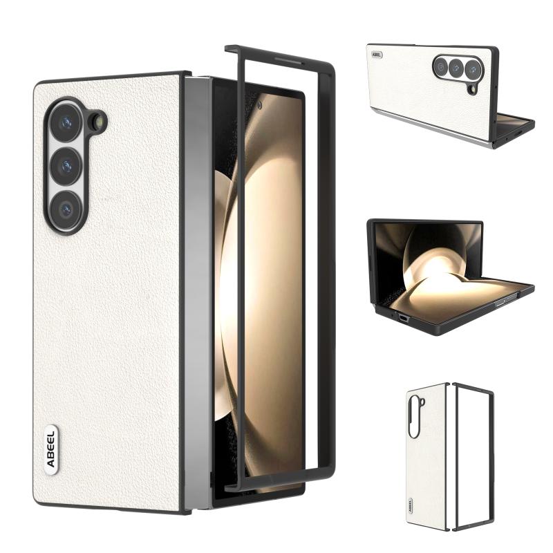 For Samsung Galaxy Z Fold6 ABEEL Genuine Leather Wave Black Edge Phone Case(Grey)