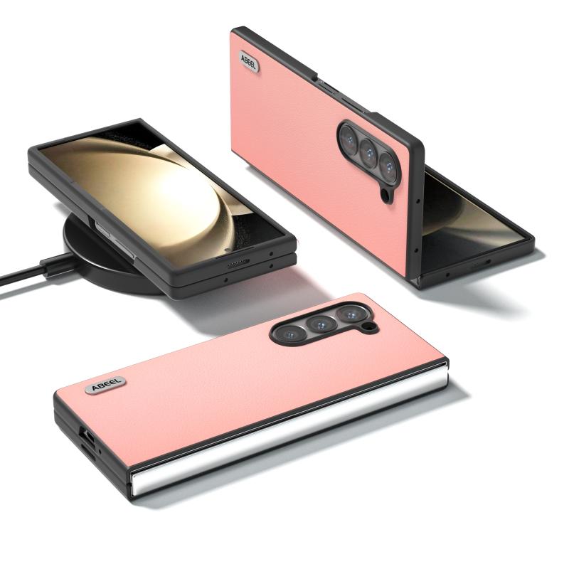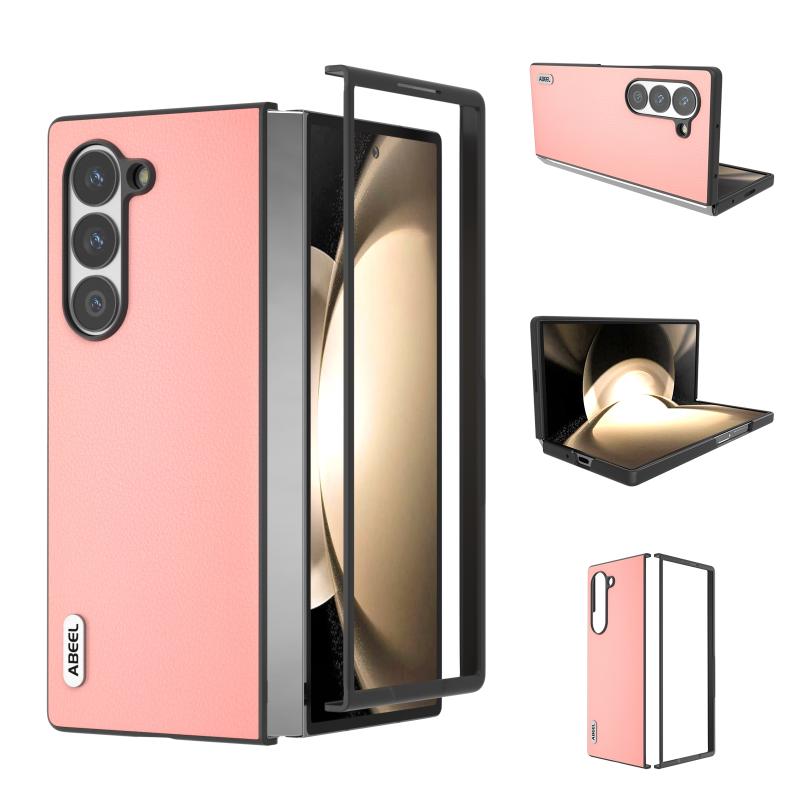 For Samsung Galaxy Z Fold6 ABEEL Genuine Leather Wave Black Edge Phone Case(Pink)