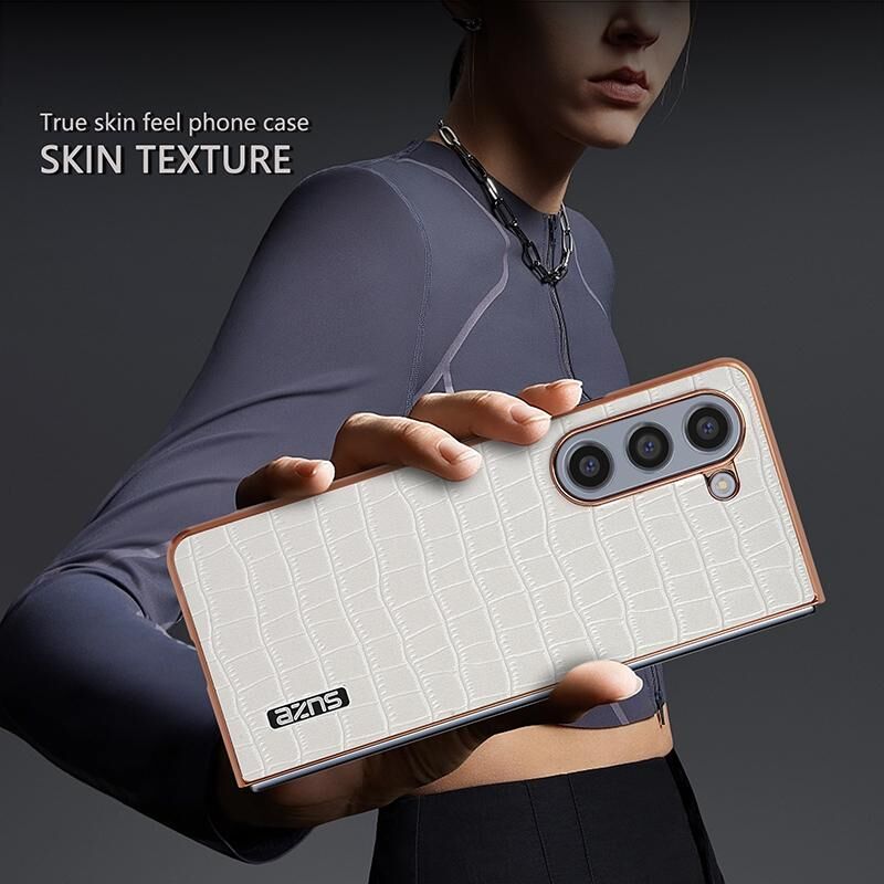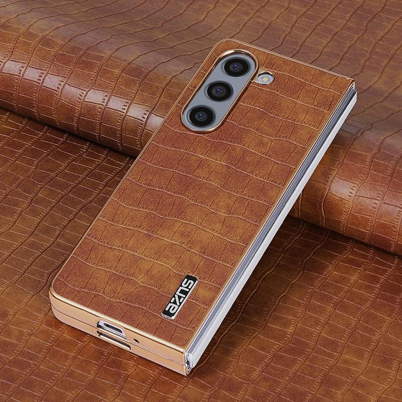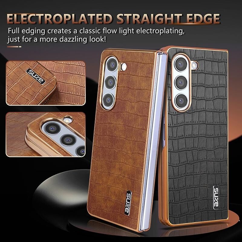 For Samsung Galaxy Z Fold6 AZNS Electroplated Frame Crocodile Texture Full Coverage Phone Case(Brown) (AZNS)