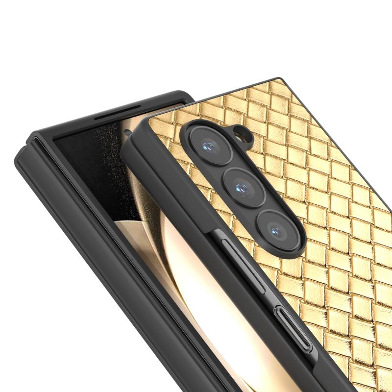 For Samsung Galaxy Z Fold6 Black Frame Woven Texture PU Phone Case(Gold)
