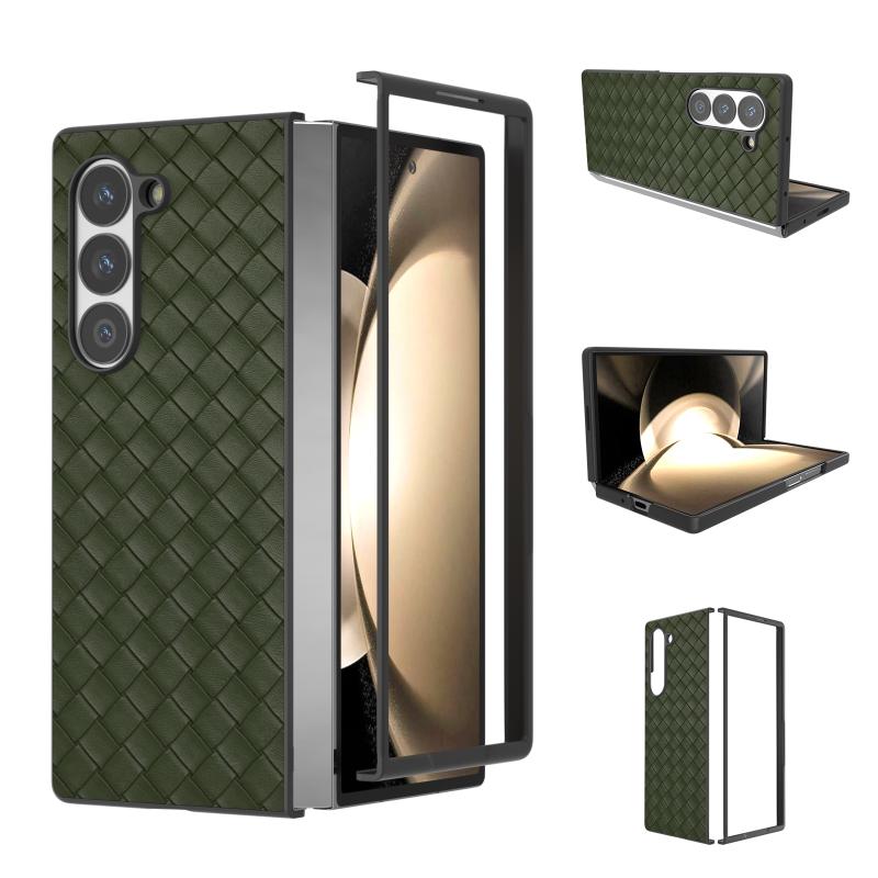 For Samsung Galaxy Z Fold6 Black Frame Woven Texture PU Phone Case(Green)