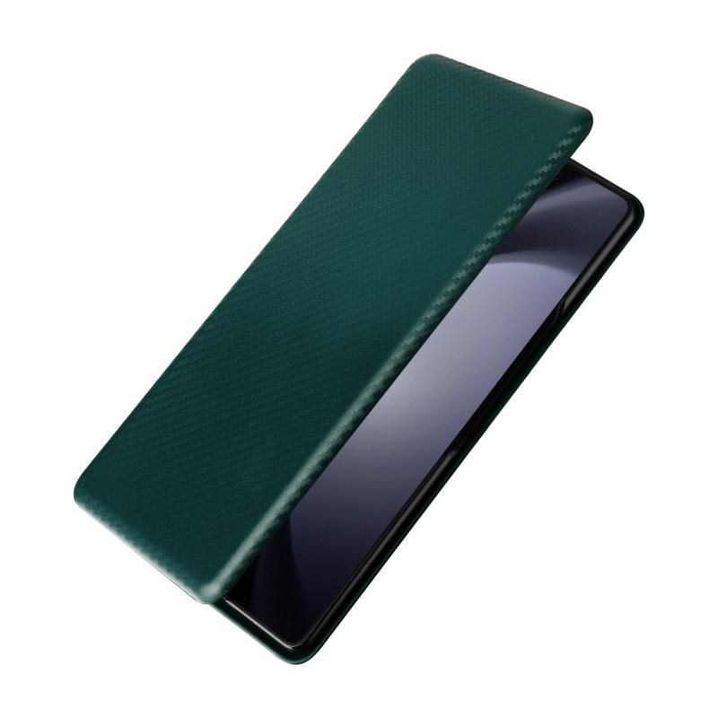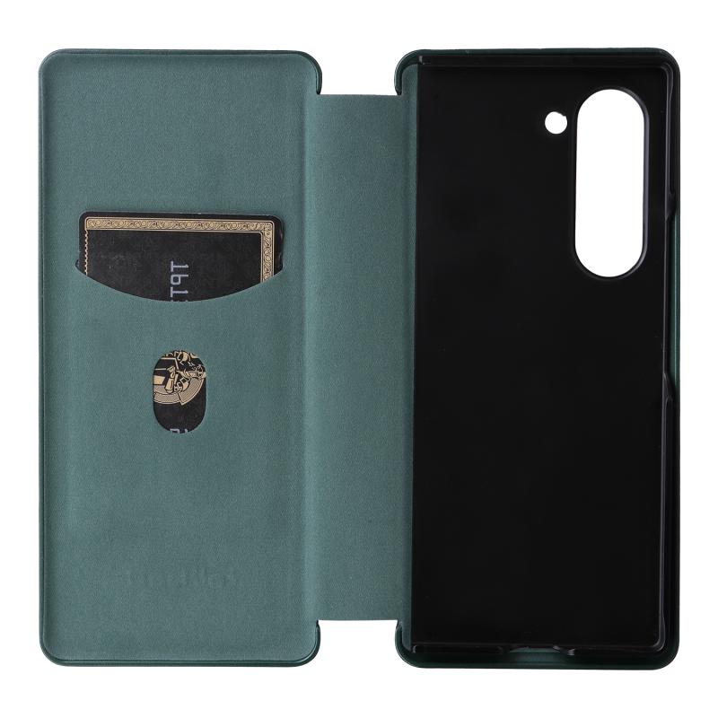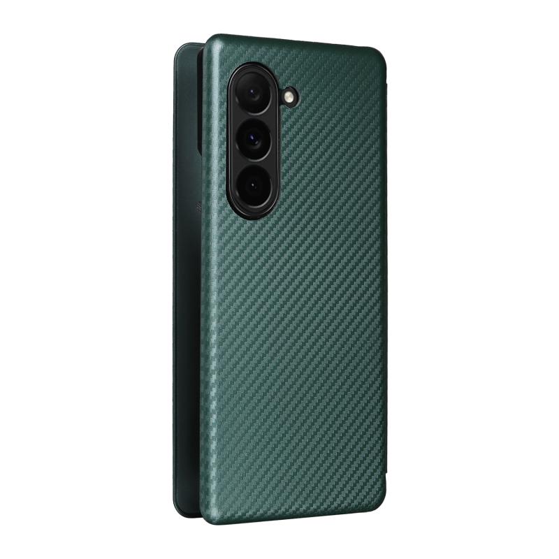 For Samsung Galaxy Z Fold6 Carbon Fiber Texture Flip Leather Phone Case(Green)