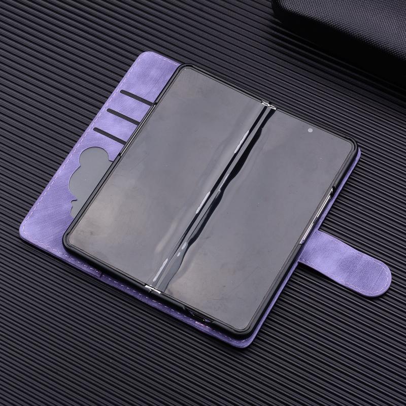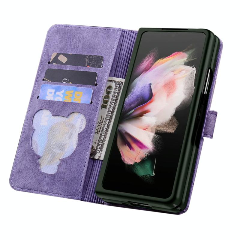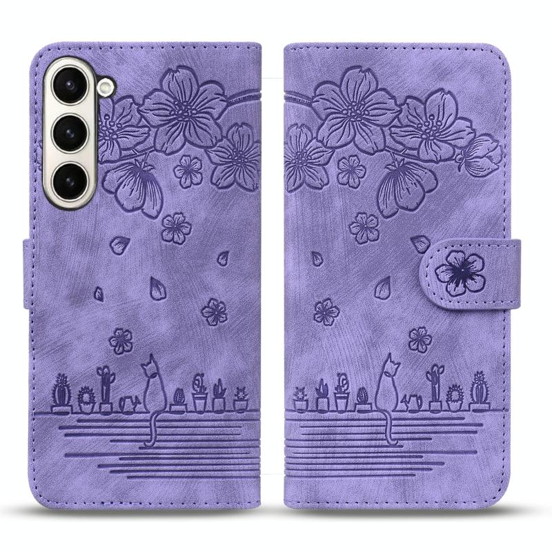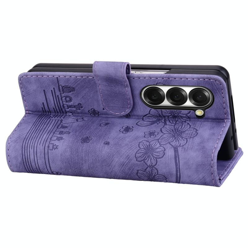 For Samsung Galaxy Z Fold6 Cartoon Sakura Cat Embossed Leather Phone Case(Purple)