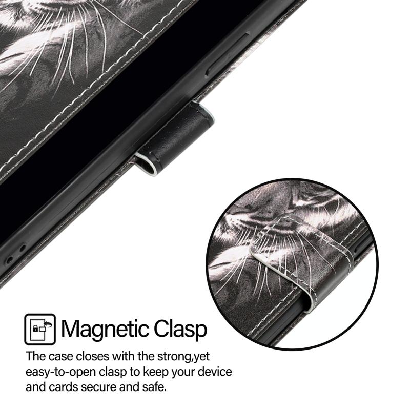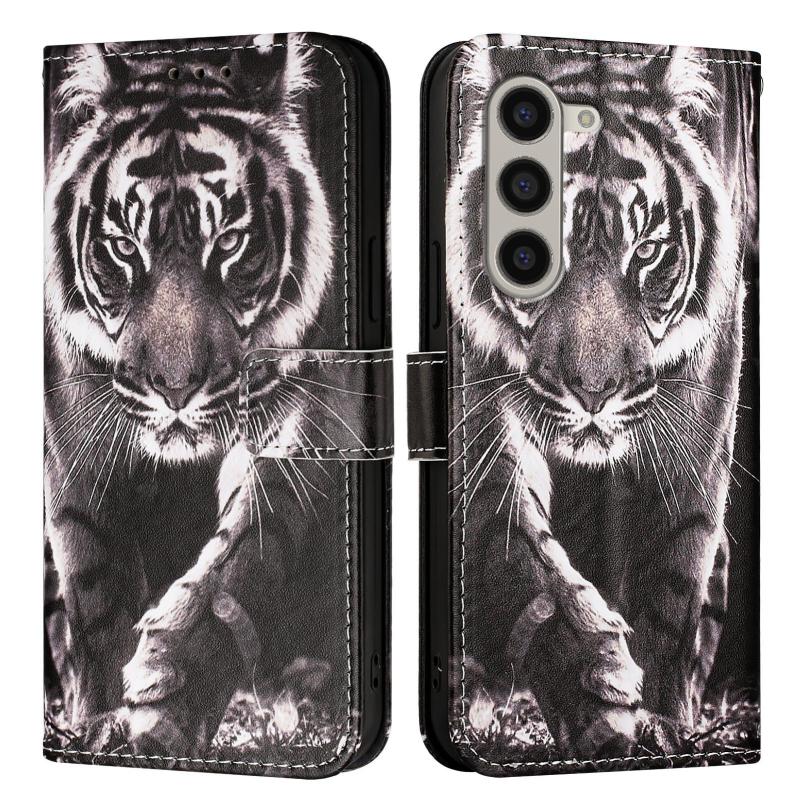 For Samsung Galaxy Z Fold6 Colored Drawing Pattern Plain Weave Leather Phone Case(Black And White Tiger)