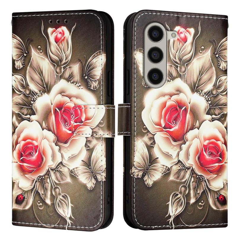 For Samsung Galaxy Z Fold6 Colored Drawing Pattern Plain Weave Leather Phone Case(Roses On Black)