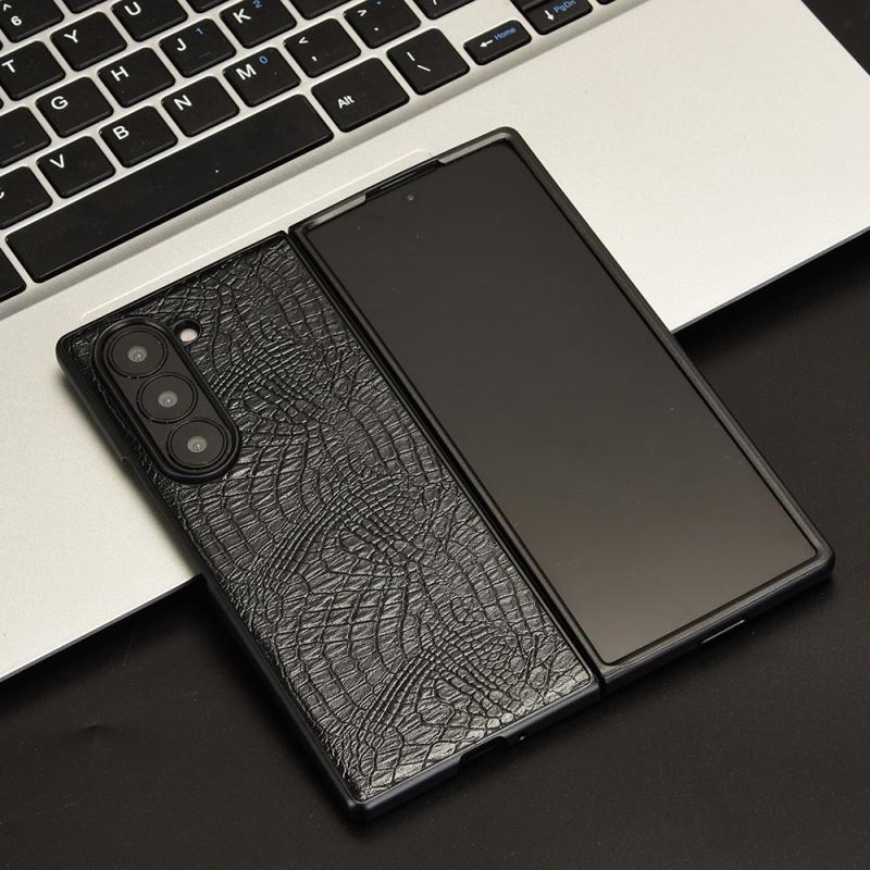 For Samsung Galaxy Z Fold6 Crocodile Texture Back Cover Phone Case(Black)