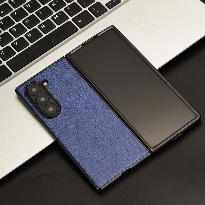 For Samsung Galaxy Z Fold6 Crocodile Texture Back Cover Phone Case(Blue)
