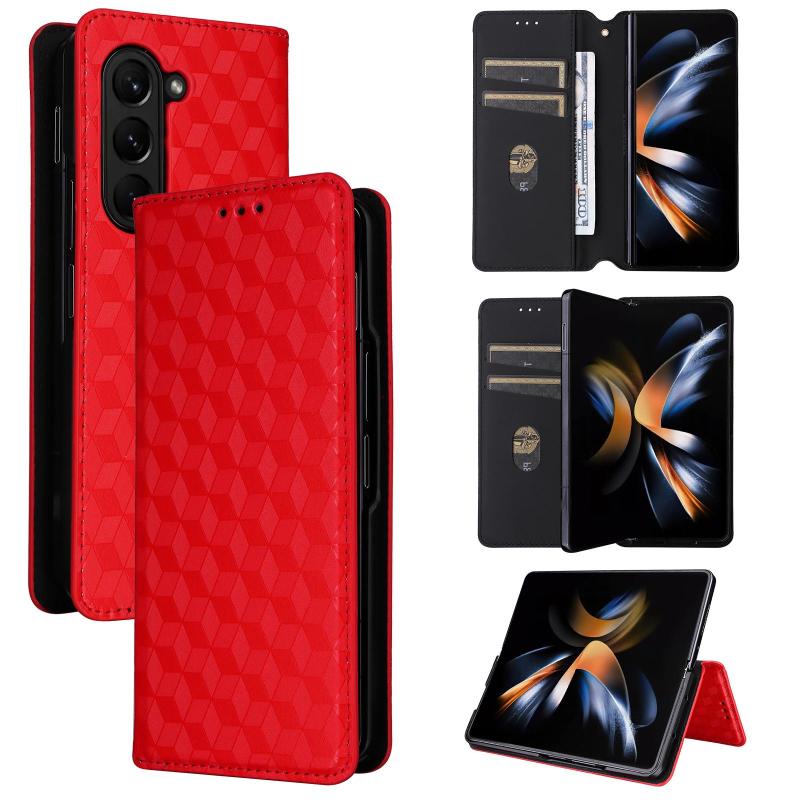 For Samsung Galaxy Z Fold6 Cubic Grid Texture Flip Leather Phone Case(Red)
