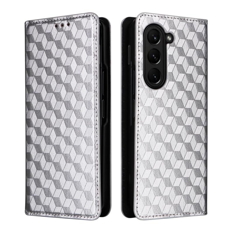 For Samsung Galaxy Z Fold6 Cubic Grid Texture Flip Leather Phone Case(Silver)