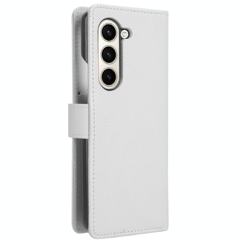 For Samsung Galaxy Z Fold6 Diamond Texture Leather Phone Case(White)