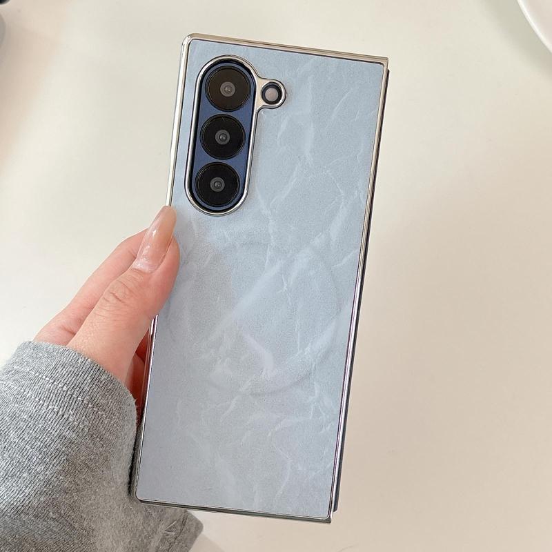 For Samsung Galaxy Z Fold6 Electroplating PC Snow Bark Texture MagSafe Phone Case(Blue)
