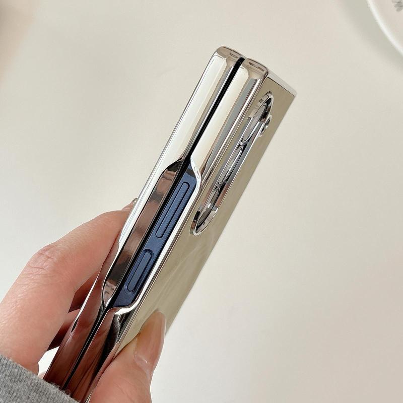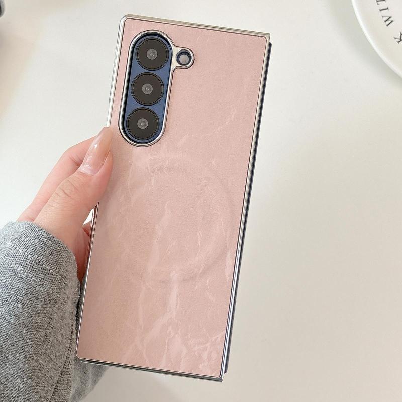 For Samsung Galaxy Z Fold6 Electroplating PC Snow Bark Texture MagSafe Phone Case(Pink)