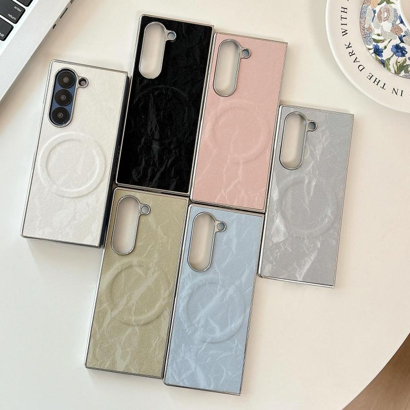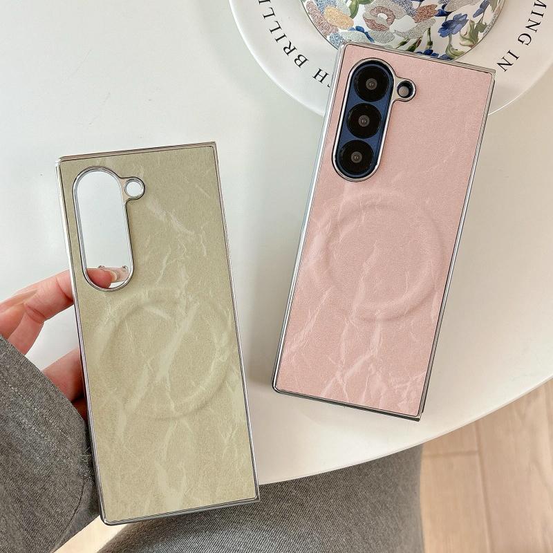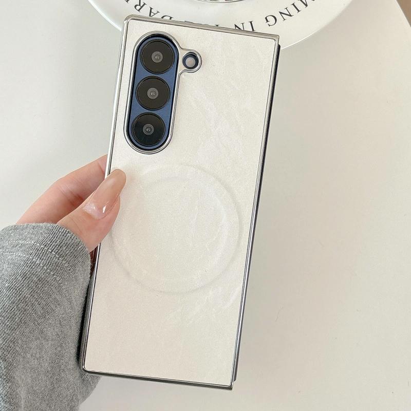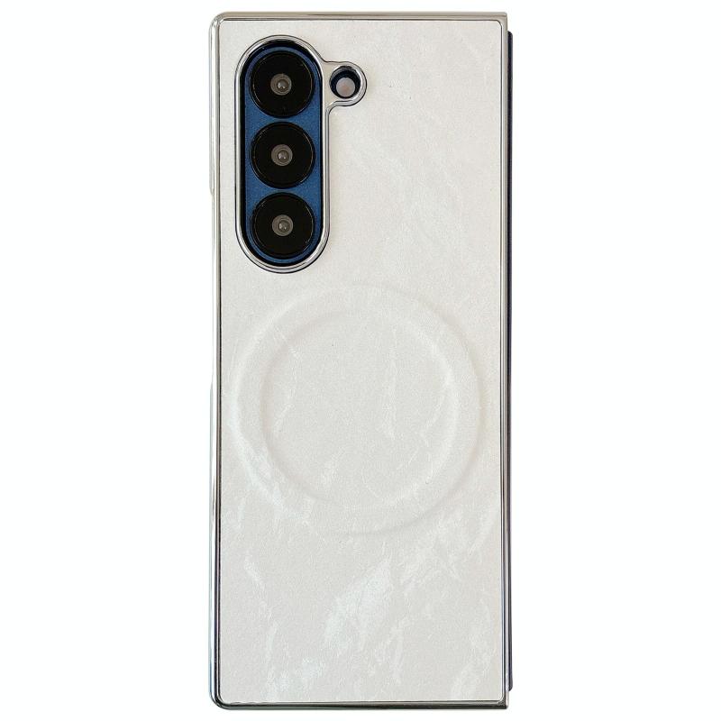 For Samsung Galaxy Z Fold6 Electroplating PC Snow Bark Texture MagSafe Phone Case(White)