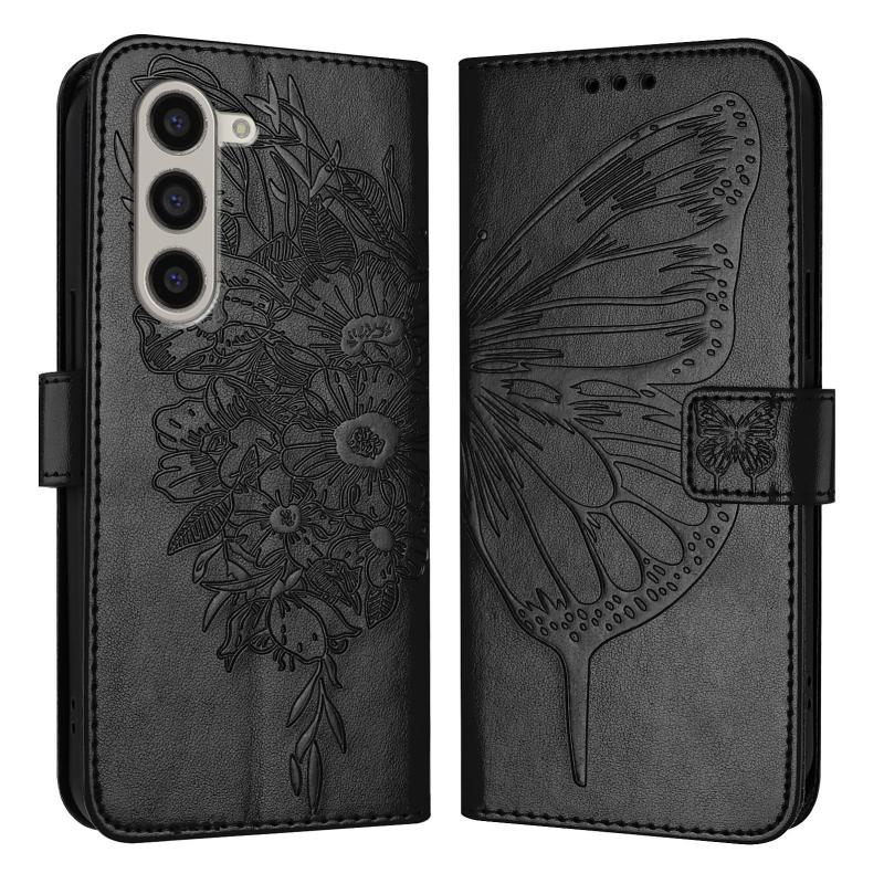 For Samsung Galaxy Z Fold6 Embossed Butterfly Leather Phone Case(Black)