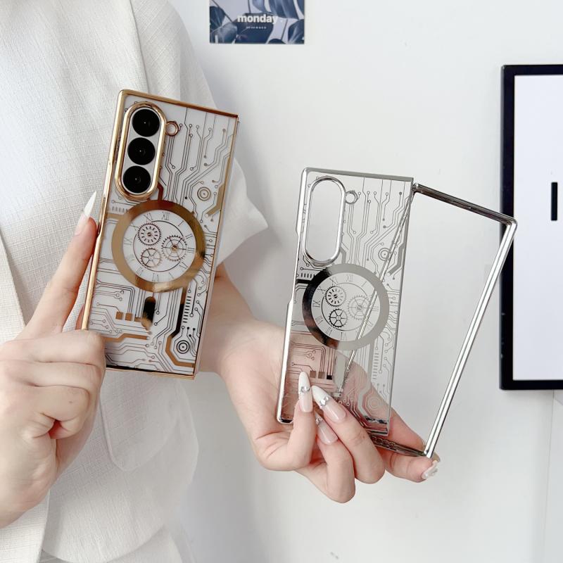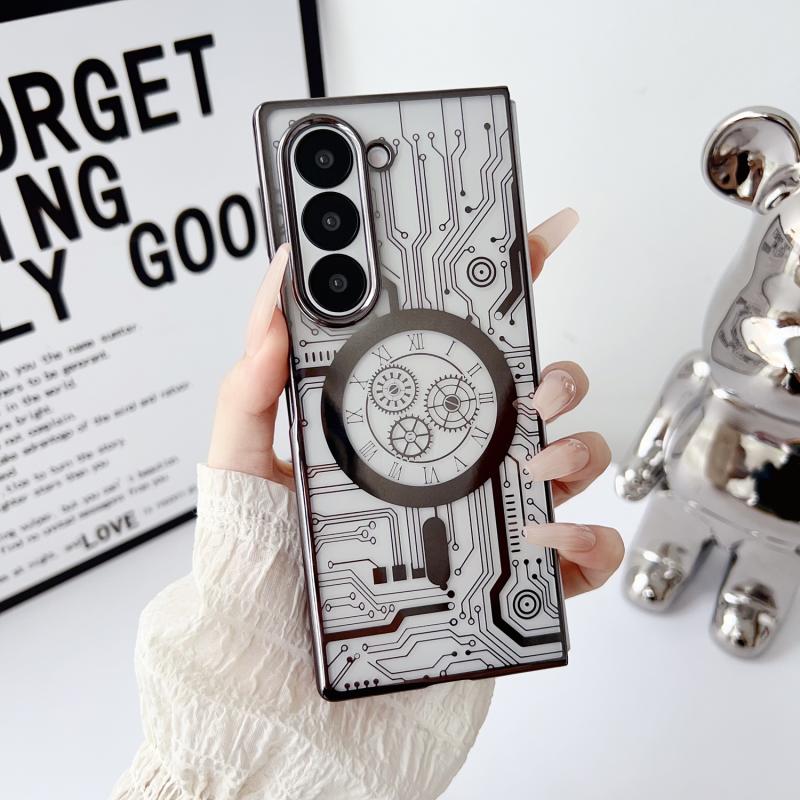 For Samsung Galaxy Z Fold6 Folding Plating Transparent Shockproof MagSafe Phone Case(Black)