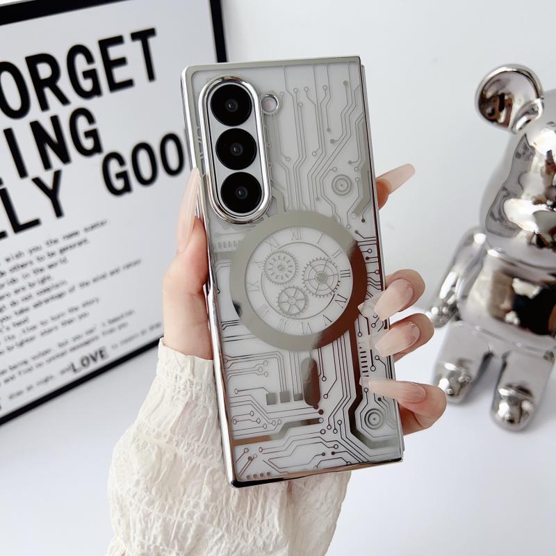 For Samsung Galaxy Z Fold6 Folding Plating Transparent Shockproof MagSafe Phone Case(Silver)