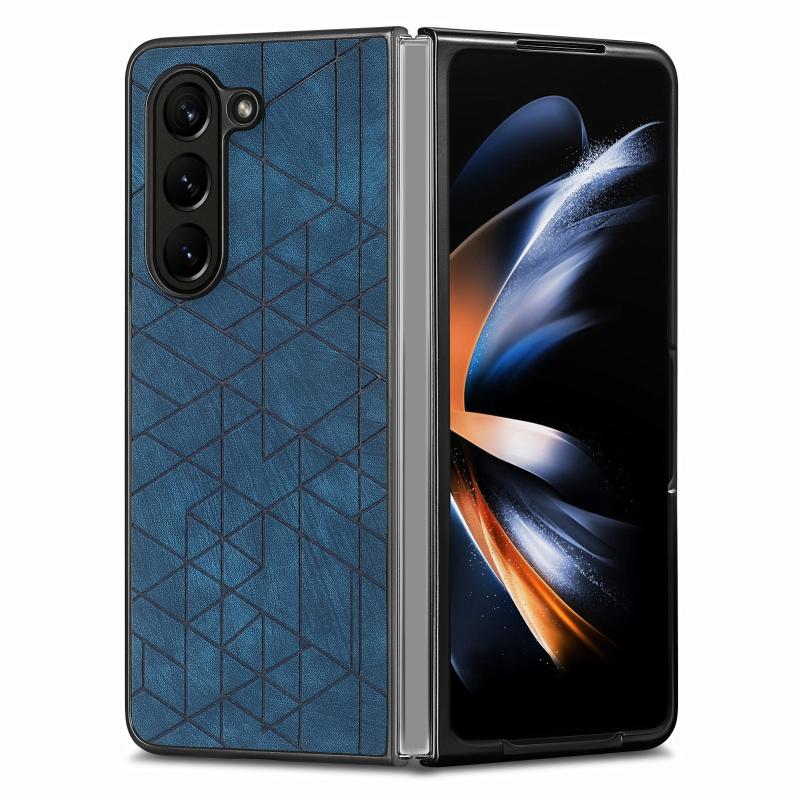 For Samsung Galaxy Z Fold6 Geometric Leather Back Cover Phone Case(Blue)