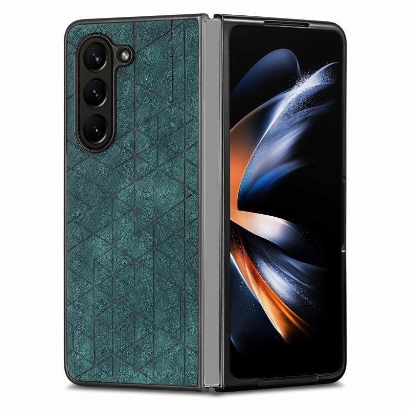 For Samsung Galaxy Z Fold6 Geometric Leather Back Cover Phone Case(Green)