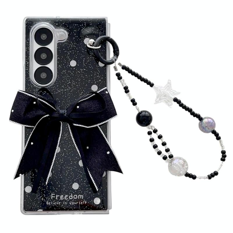 3. Bracelet-style Strap: Includes a stylish black and white beaded strap adorned with star and crystal ball accents, both fashionable and functional for added grip.