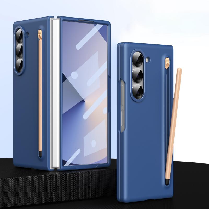 For Samsung Galaxy Z Fold6 Integrated Skin Feel Foldable Phone Case with Capacitive Stylus(Blue)