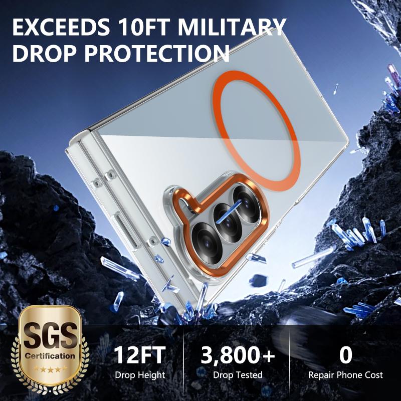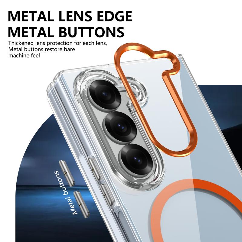 For Samsung Galaxy Z Fold6 lce Folding Series MagSafe Integrated Clear PC Phone Case(Orange)