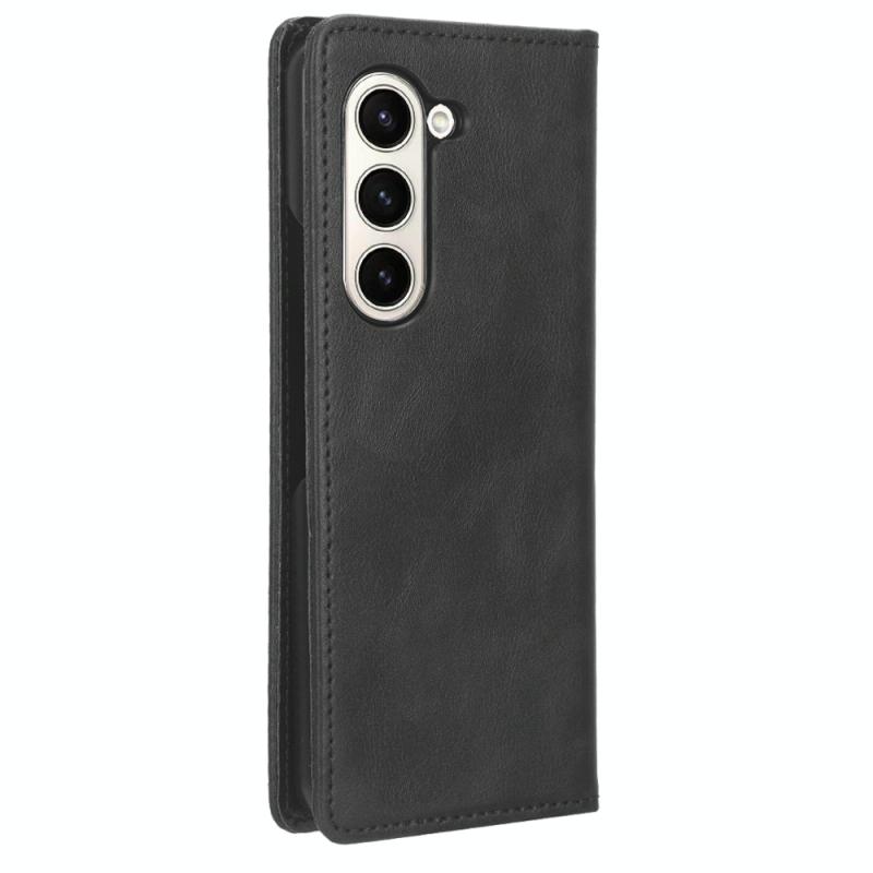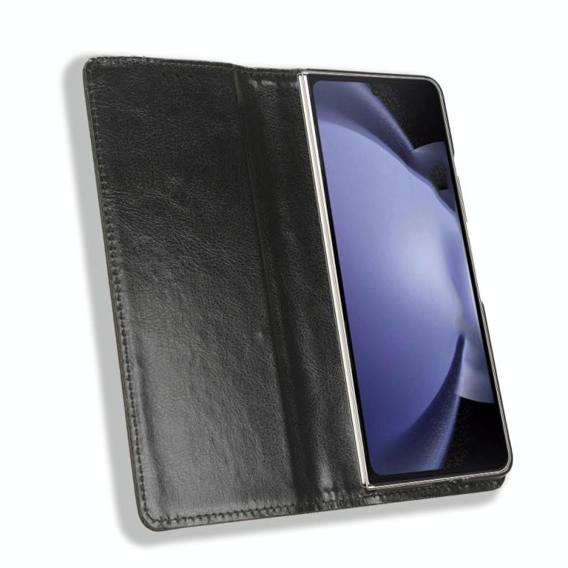 For Samsung Galaxy Z Fold6 Magnetic Buckle Retro Texture Leather Phone Case(Black)