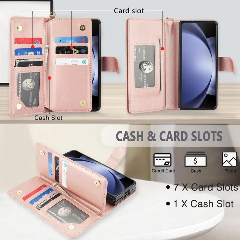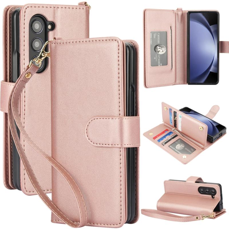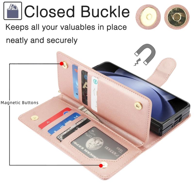 For Samsung Galaxy Z Fold6 Multi-Card Wallet RFID Leather Phone Case(Rose Gold)