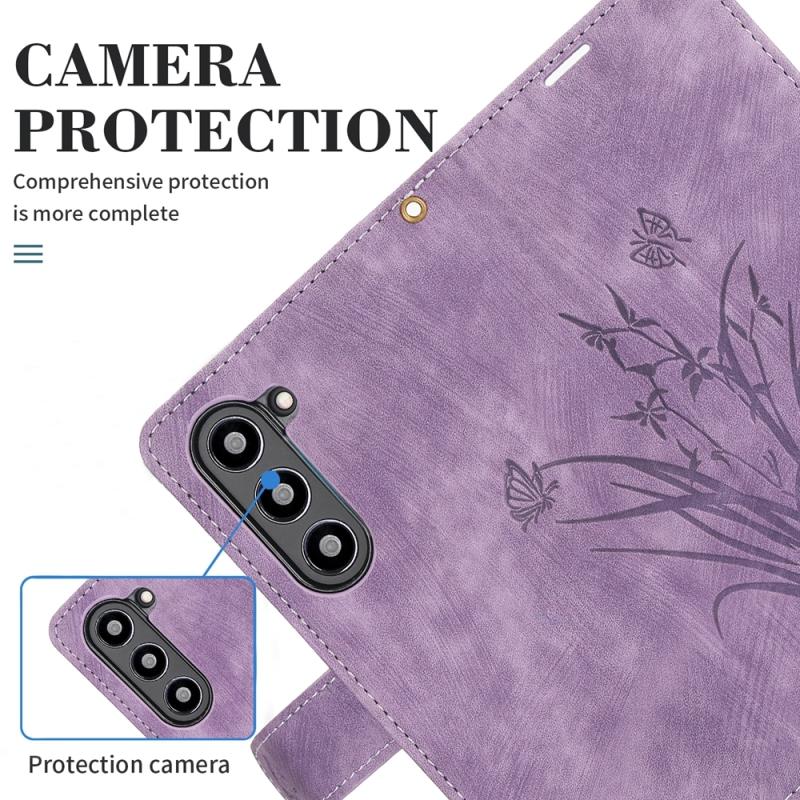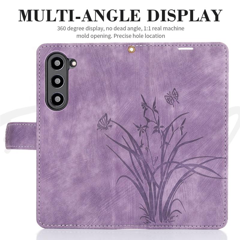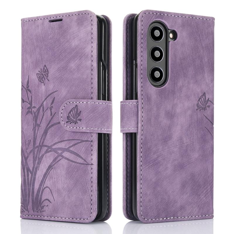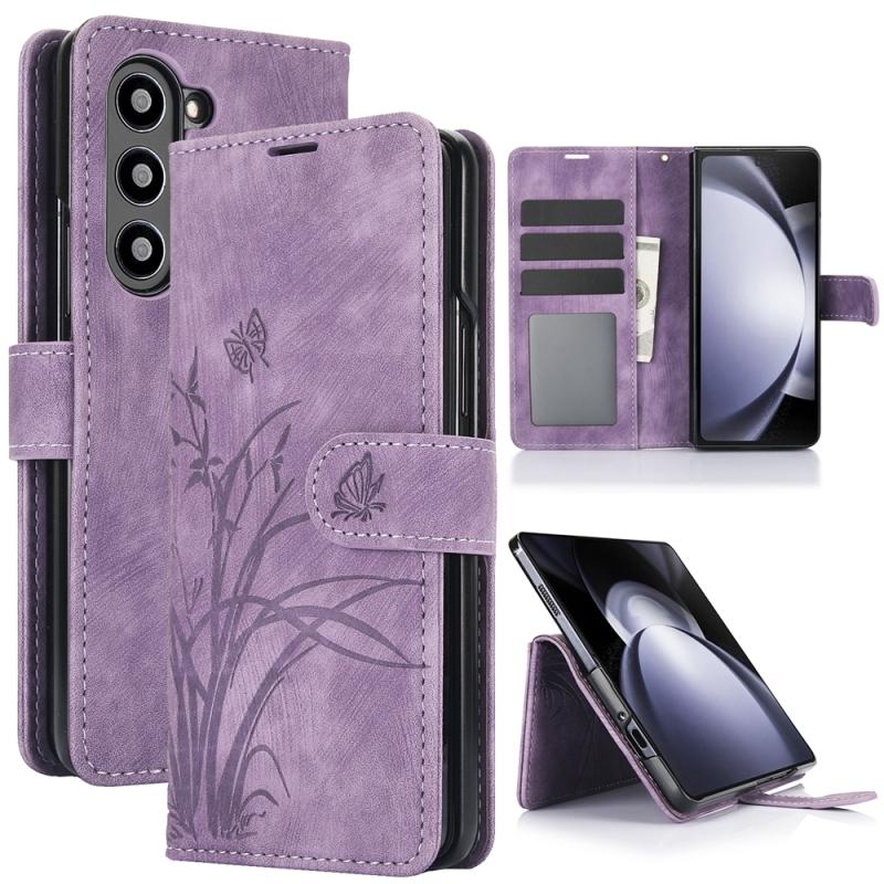 For Samsung Galaxy Z Fold6 Orchid Butterfly Embossed Leather Phone Case(Purple)