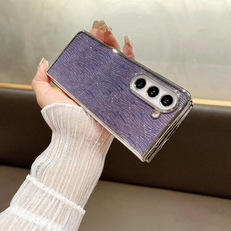 For Samsung Galaxy Z Fold6 PC Side Buckle+Ripples Glitter Paper Full Coverage Phone Case(Purple)