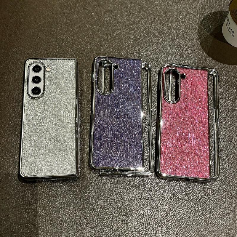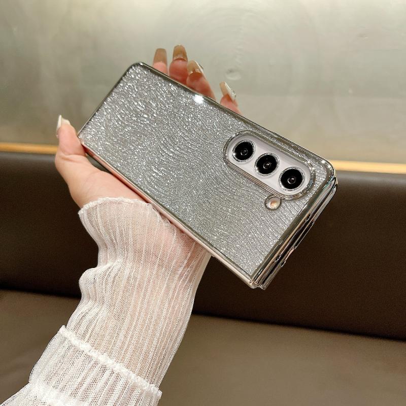 For Samsung Galaxy Z Fold6 PC Side Buckle+Ripples Glitter Paper Full Coverage Phone Case(Silver)