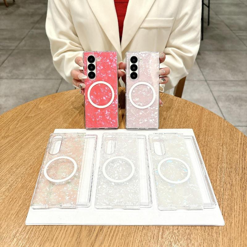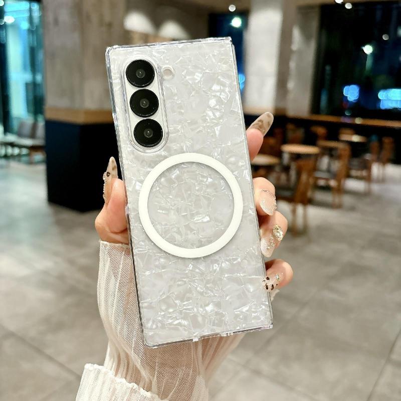 For Samsung Galaxy Z Fold6 Pearlescent Shell Texture MagSafe Phone Case(White)